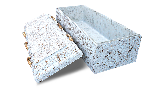 The Roberts First Lady Vault is cast from 5000 P.S.I. concrete and reinforced with steel rods and welded wire mesh. The First Lady’s interior features a simulated marble polymer liner and poured sealant in the deep lid groove. The exterior of the First Lady is hand finished in a gold over white water resistant latex paint coating and six gold handles.